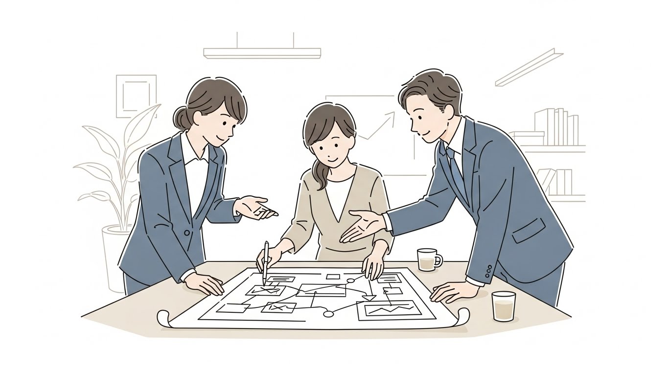 小回りが効く会社は、最初から資料を出す前に現場を見に行く(あるいは丁寧に聞く)。誰が困っているのか、どの会話が詰まっているのか、どの指標が痛んでいるのか。会社の歴史・組織文化を紐解いていくと、現場の問題とつながることはとても多い。
