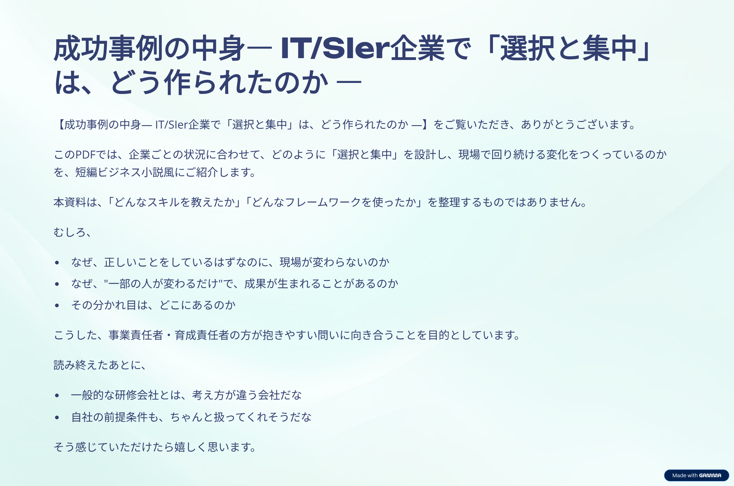 このPDFは、研修の「中身(スキルやフレームワーク)」を説明する資料ではありません。